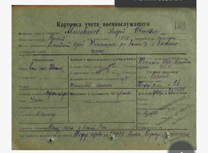 Мой прадед-ветеран Милованов Андрей Иванович. Фотографии нет.