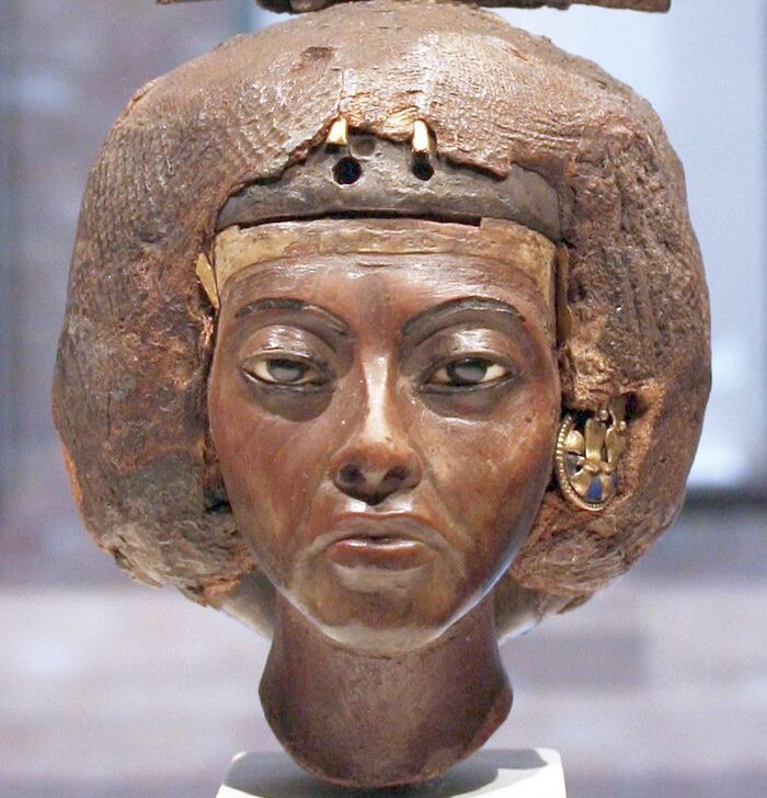 Увы, сама царица, не может быть точно идентифицирована. Историки считают, что эта могла быть царица Тия, юная Нефертити или одна из жен фараона Эхнатона — Кия.