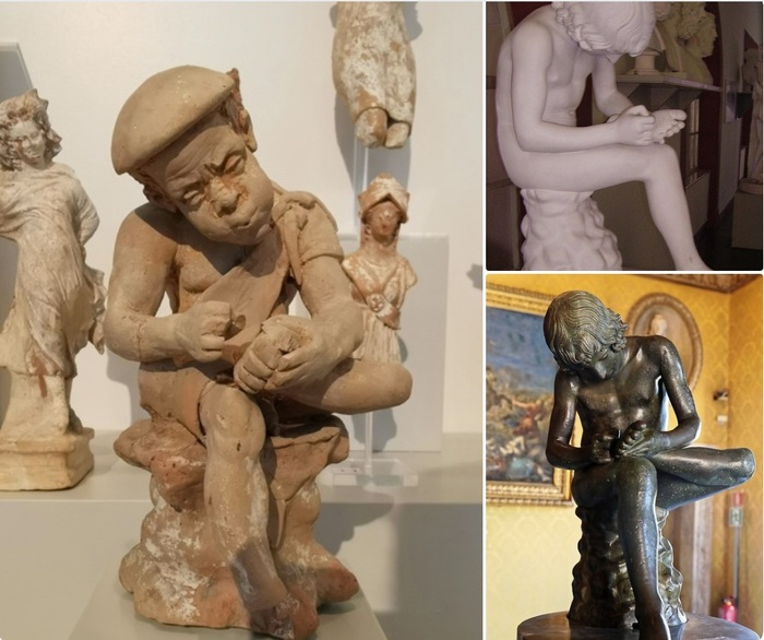 Как же он тогда мог пародировать эти статуи? Все просто. Эти Spinario, в свою очередь, всего лишь копии эллинистической бронзовой статуи III века до н.э. Так что к тому времени, когда сделали "мужичка в кепке", Spinario уже вовсю тиражировался в копиях.
