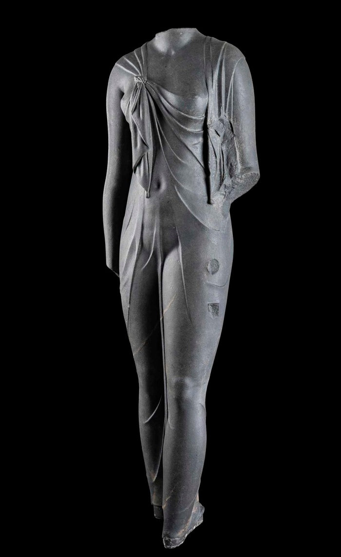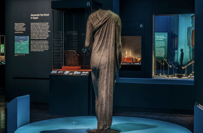 Статуя найдена морскими археологами у берега Александрии, датировка — III век до н.э., экспонат музея Александрии.