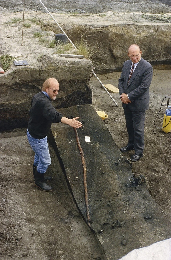 Археолог Хартмут Тиме объясняет директору управления угольных шахт Брауншвейга Клаусу Фридриху историю нахождения копья номер VI (1997)