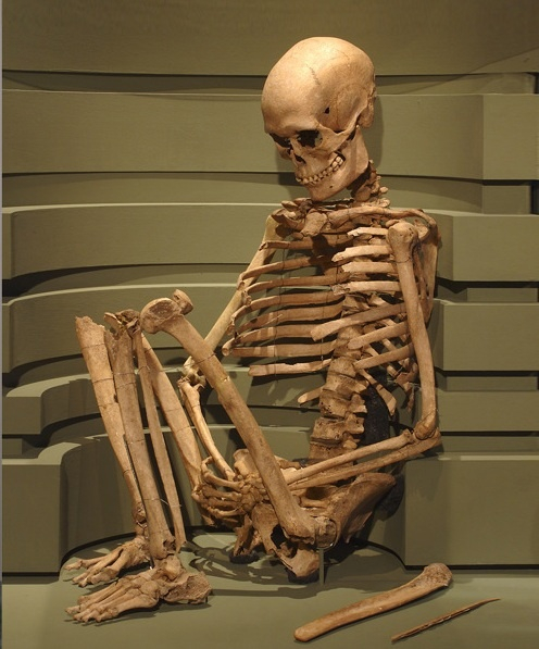 Погребенные останки явным образом указывали, что мертвеца посадили в яму, прижав его колени к груди, рядом с ним лежал целый наконечник дротика-гарпуна и еще несколько фрагментов от таких же наконечников.