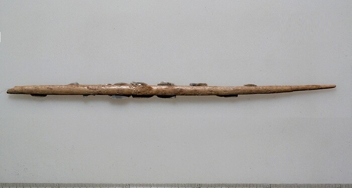 Если с копьями все было в принципе понятно, то один предмет, найденный в 1994 году вызвал споры - фрагменты еловой заостренной с двух сторон палки длиной всего 78 см. В качестве учебного копья она явно не годилась, поскольку была в 2.5 раза короче любого копья. Сохранились лишь фрагменты артефакта, а потому ученым не удалось прийти к окончательным выводам, однако находка еще одной такой палки расставила все по местам.