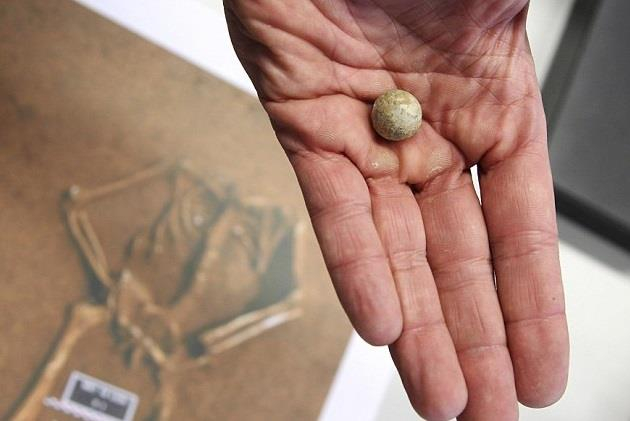 Свинцовая пуля, убившая солдата, имеет диаметр 16,4 мм и вес 23 грамма. Нет никаких сомнений в том, что ею выстрелили из французского мушкета. Этот тип пуль был разработан для мушкета образца 1777 года. У британских пуль был больший калибр: вес 32 грамма и диаметр 19 мм. Вероятно, после ранения его привезли в полевой лазарет.