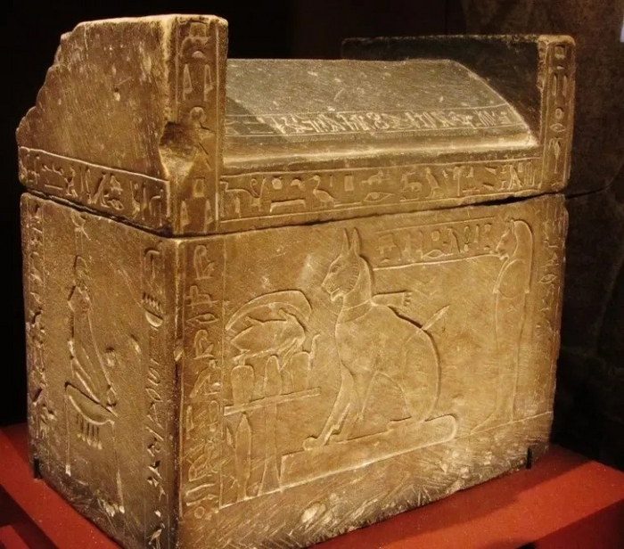 Это саркофаг любимой кошки принца Тутмоса, старшего сына фараона Аменхотепа III. Принц позаботился о посмертной жизни мурлыки.