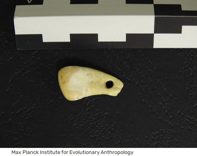 В статье опубликованной в научном журнале Nature 3 мая 2023 года сообщается, что исследователям удалось выделить и секвенировать ДНК женщины, носившую подвеску из зуба благородного оленя, найденную в Денисовой пещере.