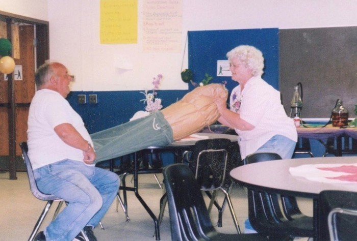 Это мои родители. Мама пытается вытащить одеяло из мешка, который держит папа. (с)