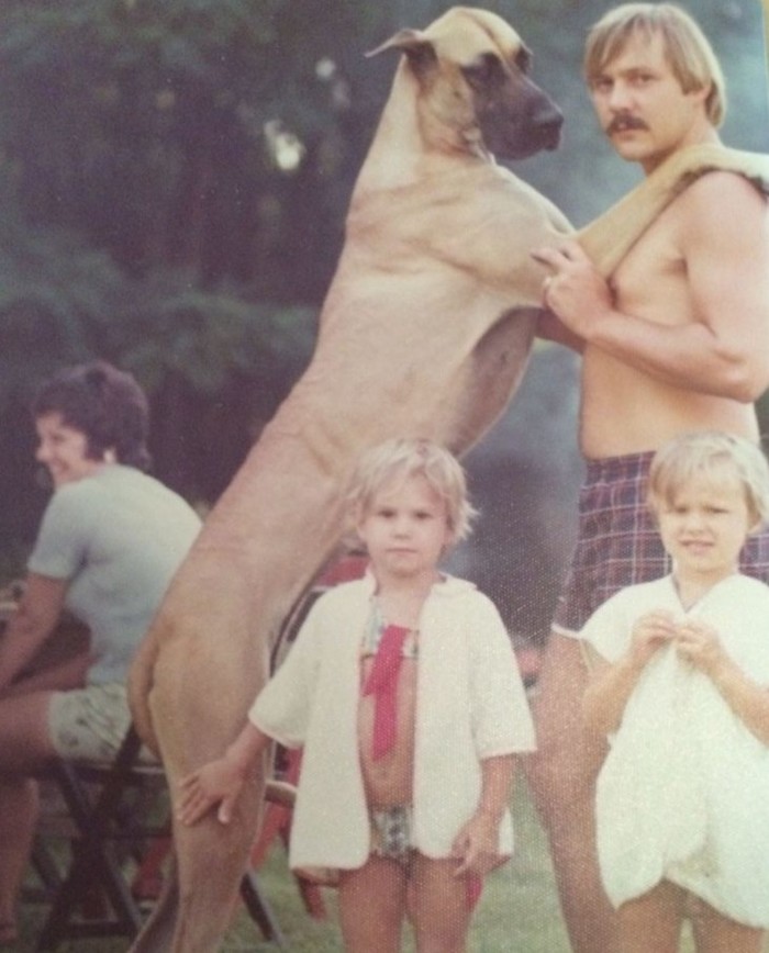 На этом фото мои старшие сестры. Я спросил отца кто этот мужик с огромной собакой. Он ответил: "Хрен его знает, но заднем плане ваша мама." (с)