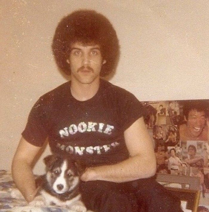 Это мой папа, его афро, его пёс и его футболка в 1978 году... (с)