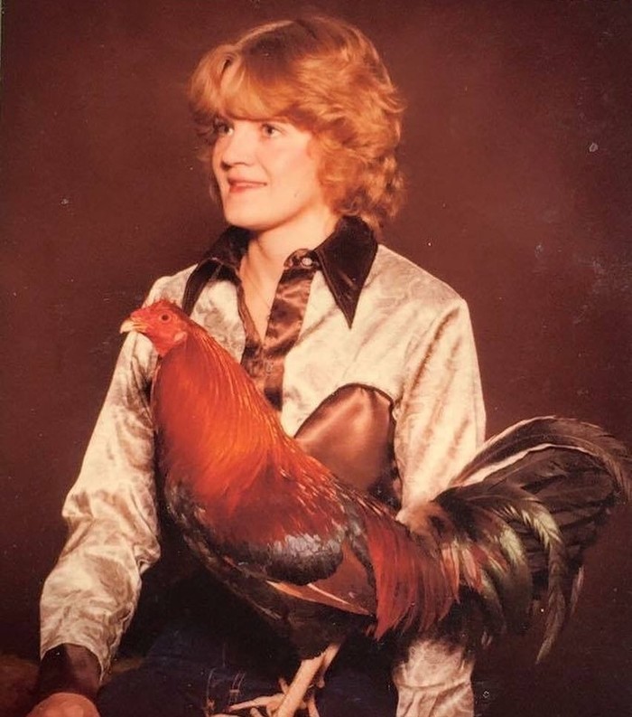 В 70-х мои родители разводили бойцовых петухов. Как-то раз папа захотел, чтобы мама сфоткалась с одним из них. (с)