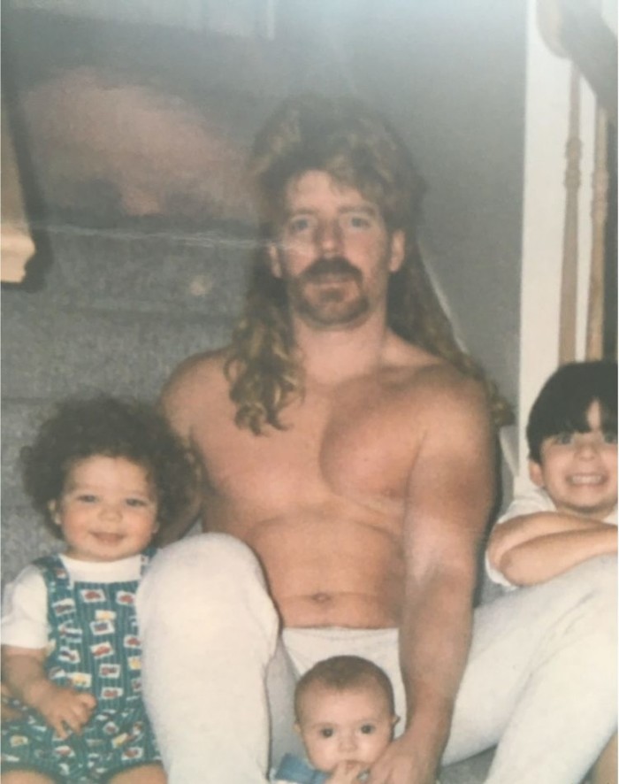 На этом фото мои родители и я, когда мне было 2 года. В то время mullet* был на пике моды. (с)