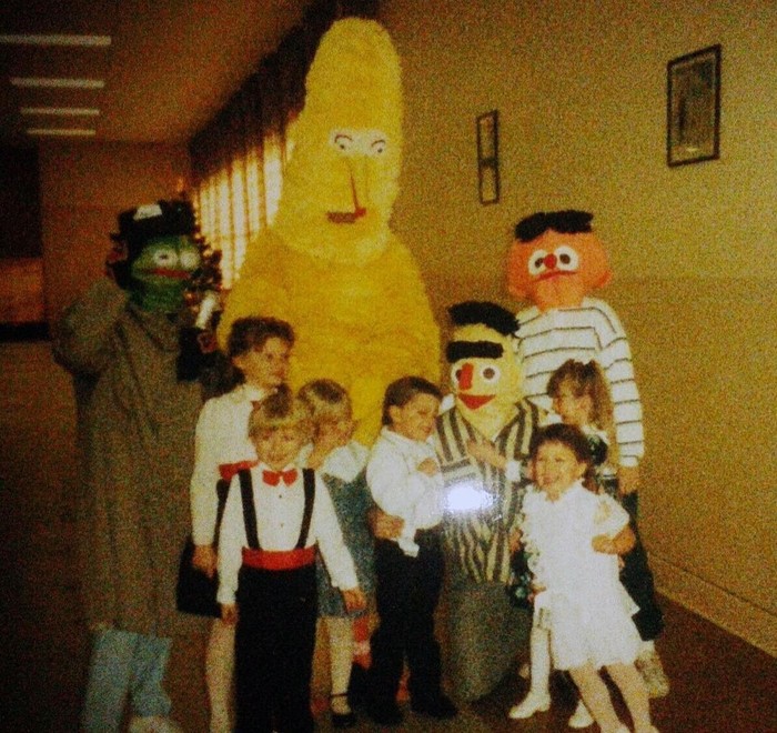 Это детское фото моей жены. Кажется это был день рождения, на котором детей развлекали аниматоры в виде кукол "Улицы Сезам". (с)
