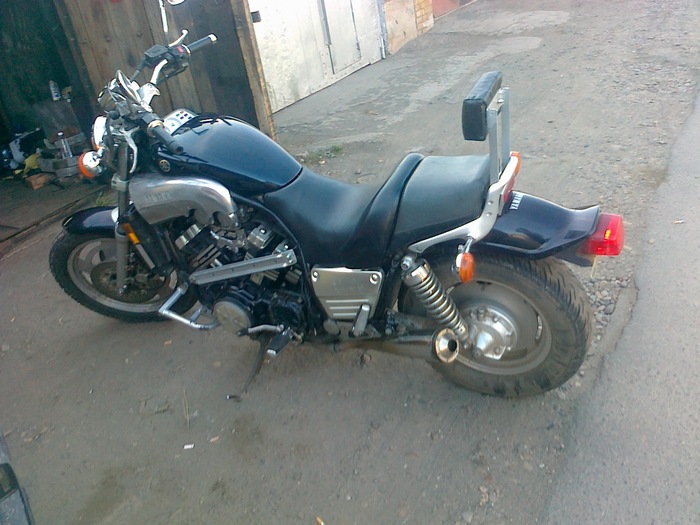 взял кредит ( ужас ) и купил два YAMAHA XV750 SPECIAL один целый, но с убитым движком, и второй после аварии, но с целым двигателем. Это всё было разобрано и собрано воедино. Отъездил я на нём года 4, или 5... Уже не помню ... Постоянные дальняки из Братска в Иркутск и обратно ( 2-3 раза за сезон ) в Усть-Илимск... Байк конечно устаревший и старенький, маломощный, с маленьким запасом топлива, с проблемным стартером, с непослушной синхронизацией карбов ... Но сколько счастья эта ведьмочка подарила мне и моей супруге и дочке :)