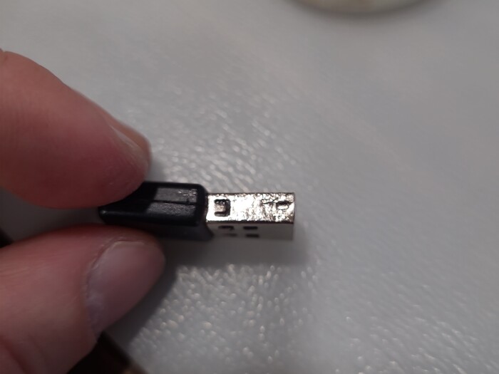 При подключении к компу определялся только, если на него надавить в сторону т.е. на излом. Продавец клянется, что когда отправлял все было цело (бред полный, там перед повреждением usb весь комплект в труху должен был бы превратиться). В общем этот муж курицы решил, что скинув 600р для компенсации (цена комплекта была 1500) его миссия выполнена и свалил в закат. Взялся за ремонт один сервис, но не вышло. Теперь комп его видит сразу, но выдает ошибку 43.