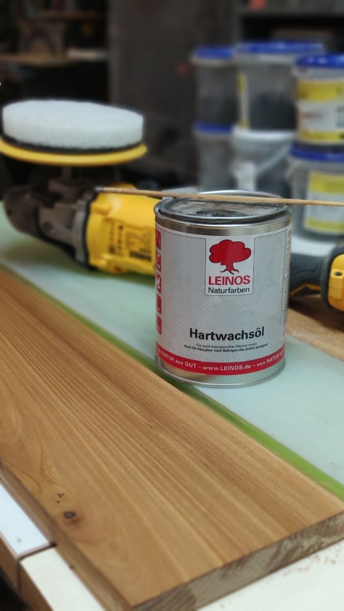 Минералку перед нанесением другого масла необходимо снять, и делать это с помощью шлифмашинки. Перекрывать одно другим не лучшая затея, а снять его - в моём случае не оказалось проблемой. Я работал вслепую, и видимо, провёл слишком хорошую шлифовку, запечатав поры дерева, и остановив масло на поверхности. С хорошим маслом были и рекомендации - как наносить, какая схема нанесения, как подготовить поверхность - вот оно уже прочно вошло в массив.