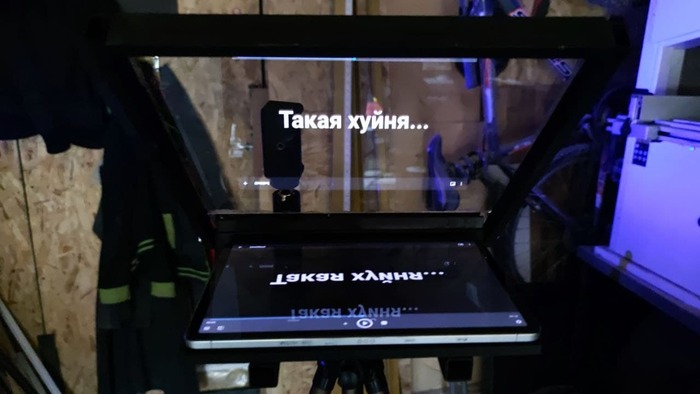 В чём проблема сделать телесуфлёр своими руками? В том, что походящее стекло ты х*й найдешь. Если взять обычную стекляшку, уронить её под 45°, и положить снизу планшет, ты увидишь текст, отражённый с двух сторон. И чем толще стекло, тем дальше будет отражение. А теперь представь что текста много, идёт он со скоростью твоей обычной речи, и нужно всё это дело ещё прочитать с чувством, с мерой, с расстановкой. Профи может быть и справится, а моя пока не дорос и чуть кукушенцием не поехал. И без того меня двое, а коль текста будет двое - ну пи*дец, ну приеду ведь совсем.