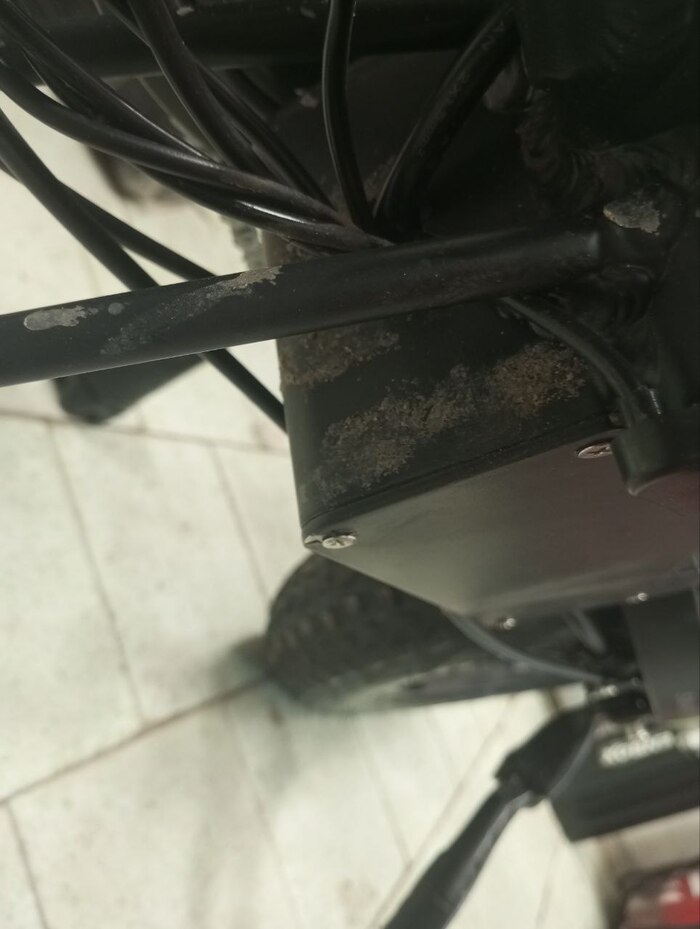 Позже ещё увидел, что они даже не зафиксировали провод мотор колеса стяжками, то есть он тёрся о диск.