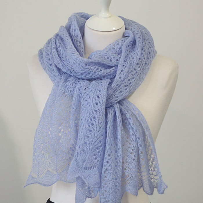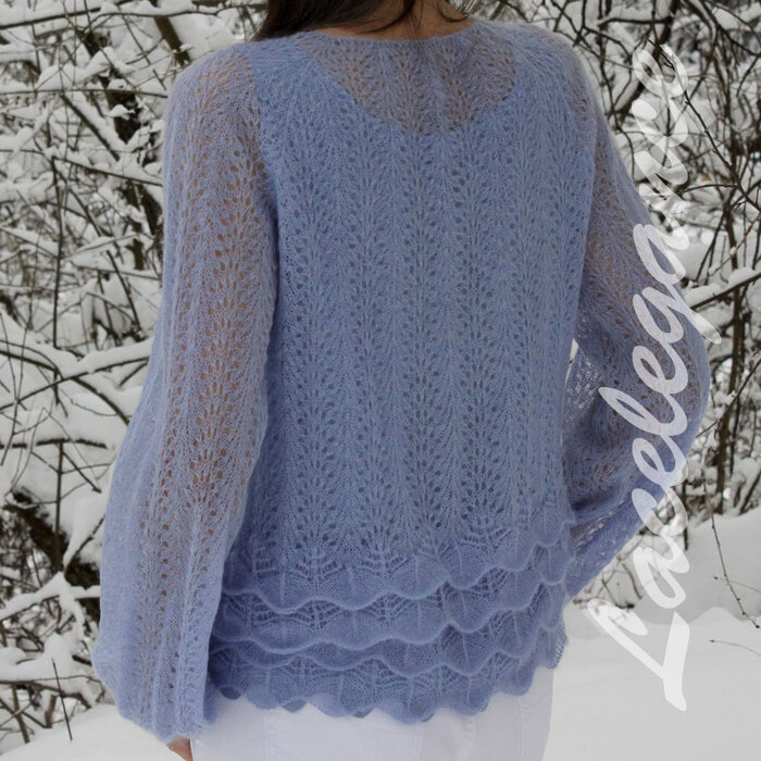 Из этого мохера простой кулиркой было связано нечто бесформенное с капюшоном, а заказчице хотелось воздушной нежнятины именно такого цвета.