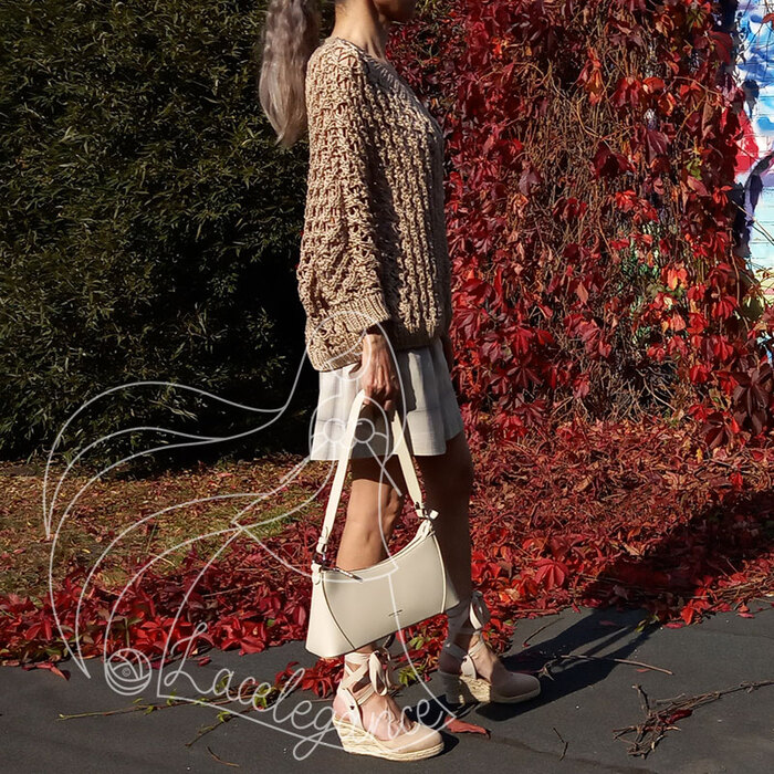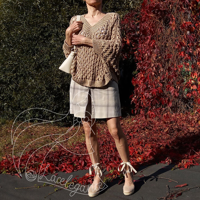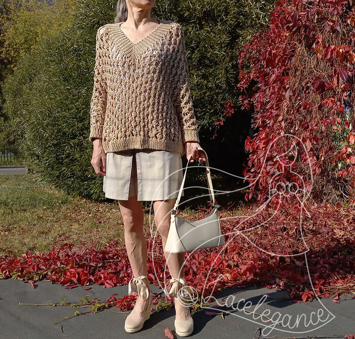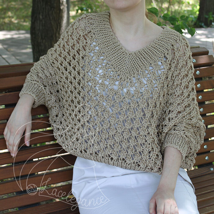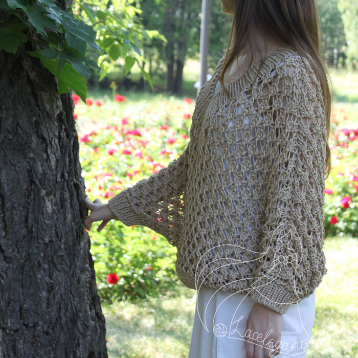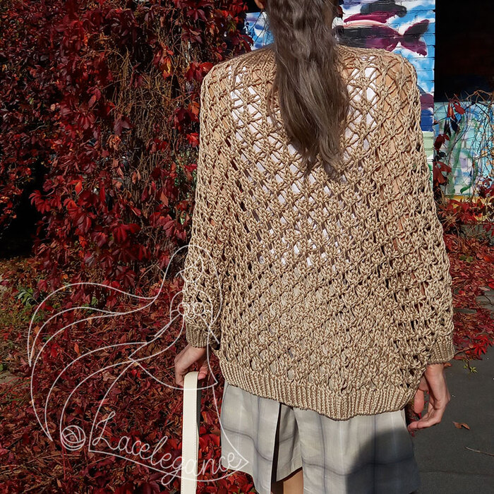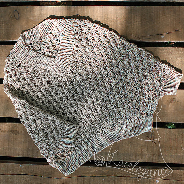 Начиналось все с ажурного узора, произвел неизгладимое впечатление. Просто ажурная вставка казалась инородной, а с такими же рукавами вполне прижилась. Араны тоже отлично вписались.
