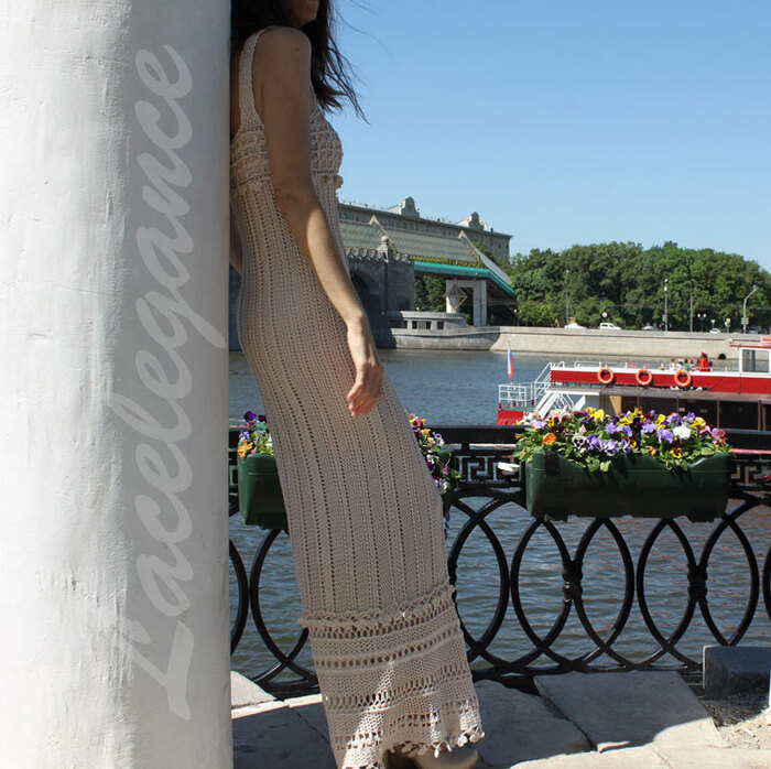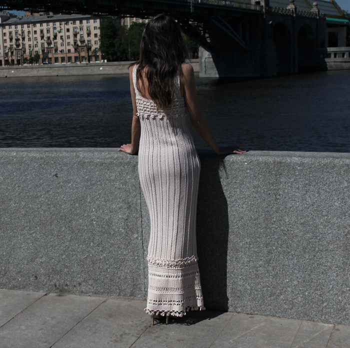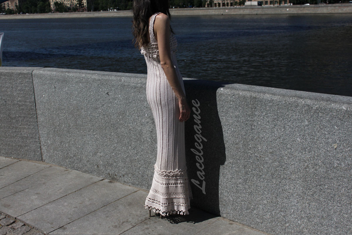 Платье было связано 2 года назад, но сфотографировать его - прям боль мучительная, легче еще одно платье связать. Каждый раз приходится себя заставлять. Вот и сейчас - лето уходит, а платье не отфотано (((