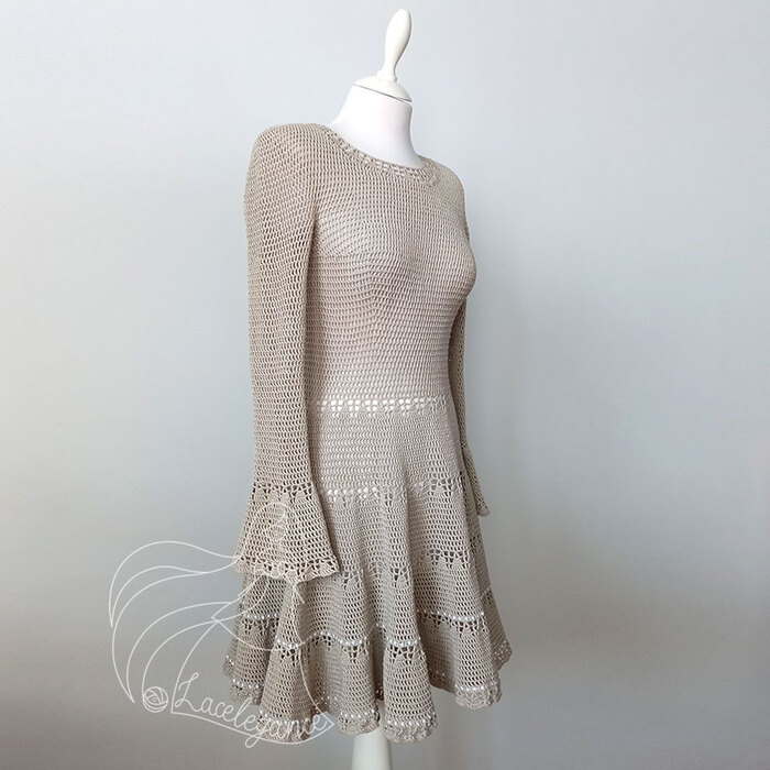 Когда я собиралась начать вязать это платье, еще не знала, что во Вселенной существует шелк, поэтому платье из хлопка ), юбка - 1,15 солнца.