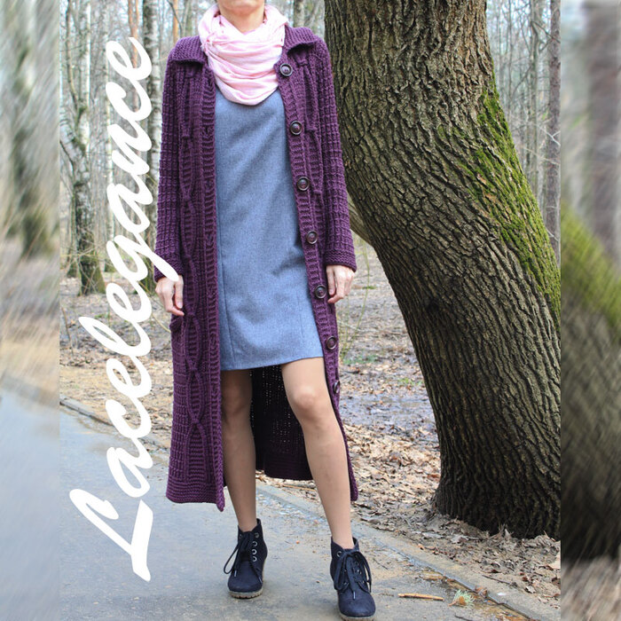 Когда-то давно у меня был длинный черный вязаный кардиган типа пальто. Захотелось повторить тот подвиг.