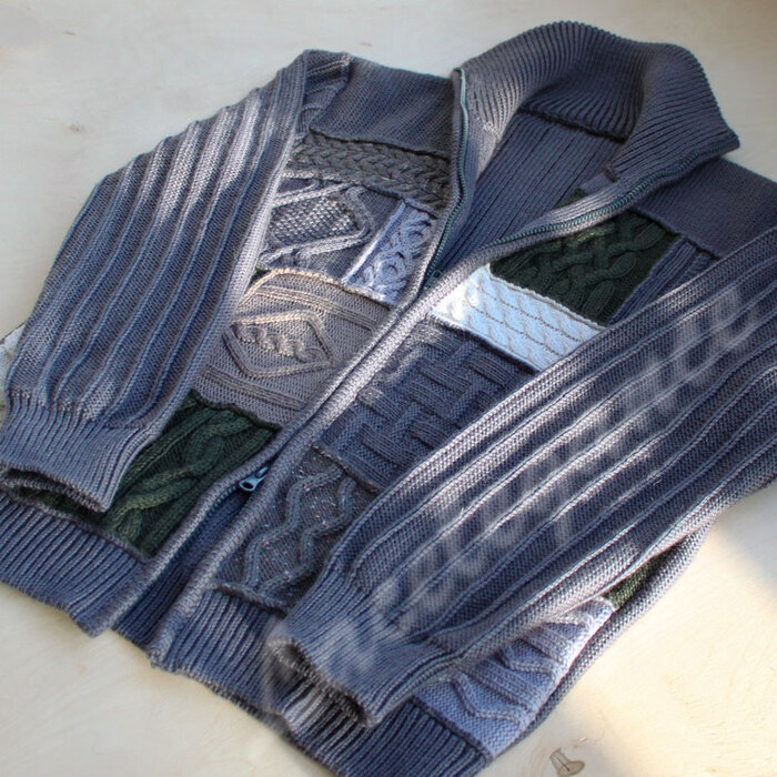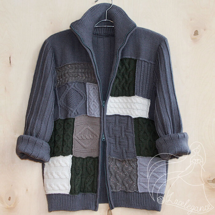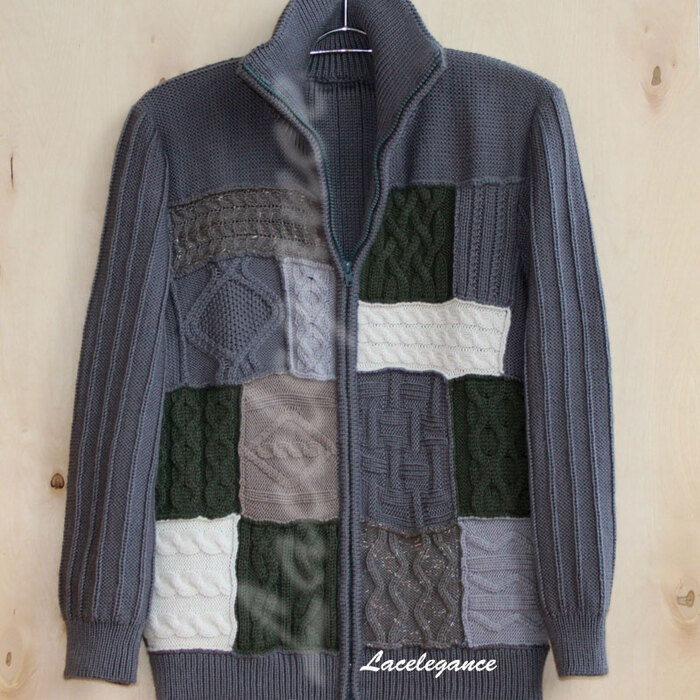 Осуществила свою давнюю мечту - связать пэчворковый кардиган. Получился мужским.