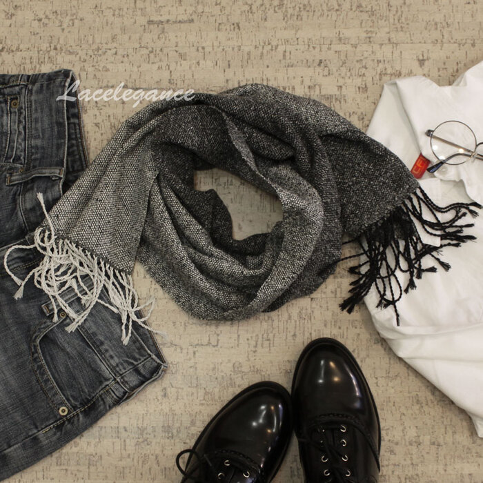 По своим сочетанием черного и белого шарф напоминает мрамор.