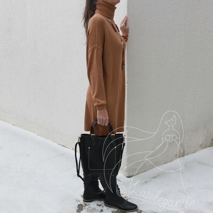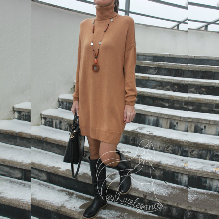 Сегодня быстро и без изысков показываю платье-свитер фасона балахон размера оверсайз с декоративными вставками.