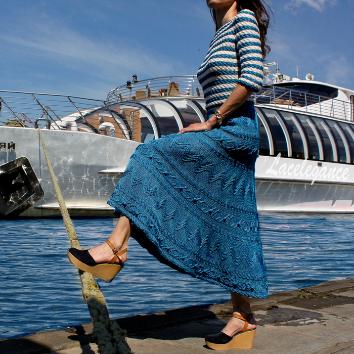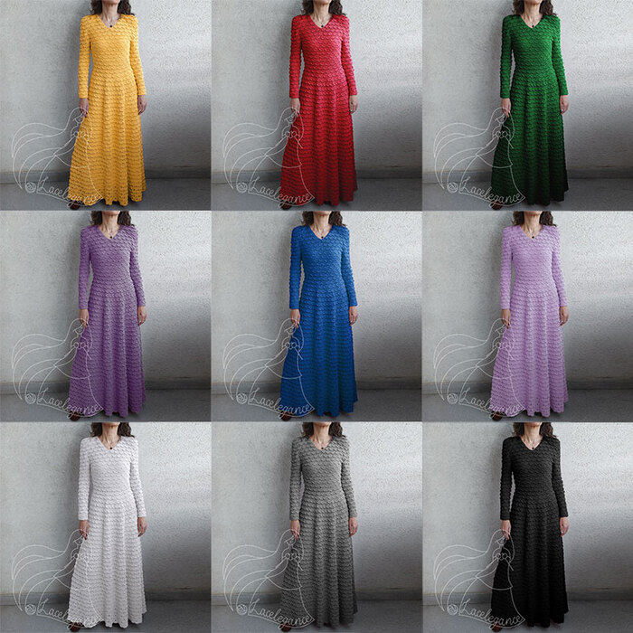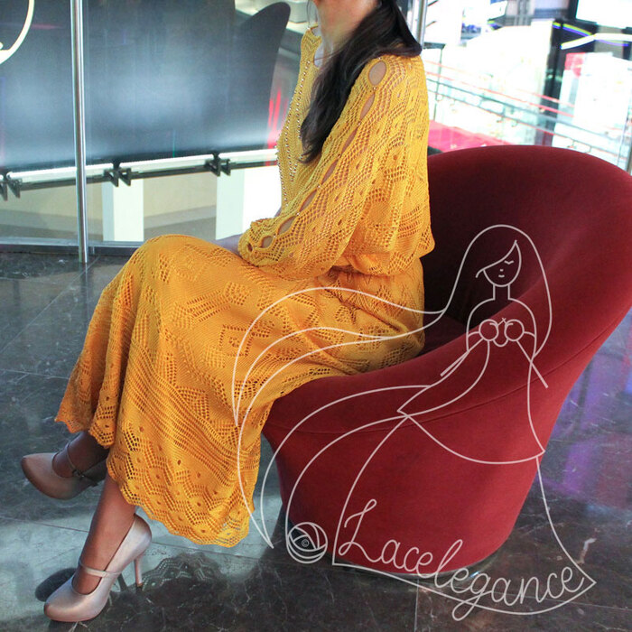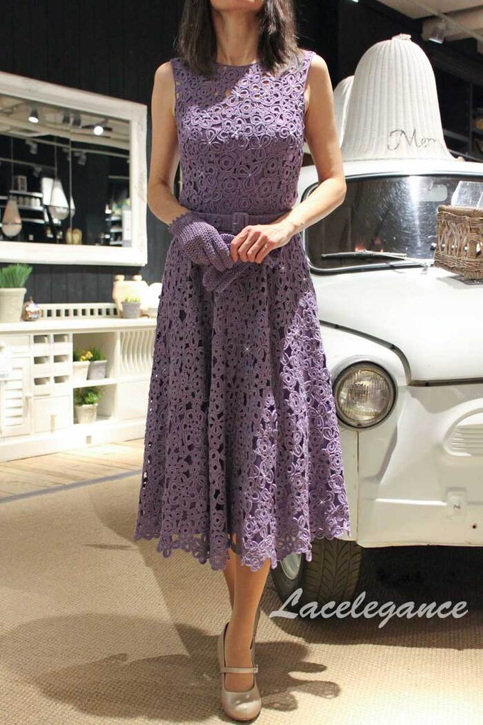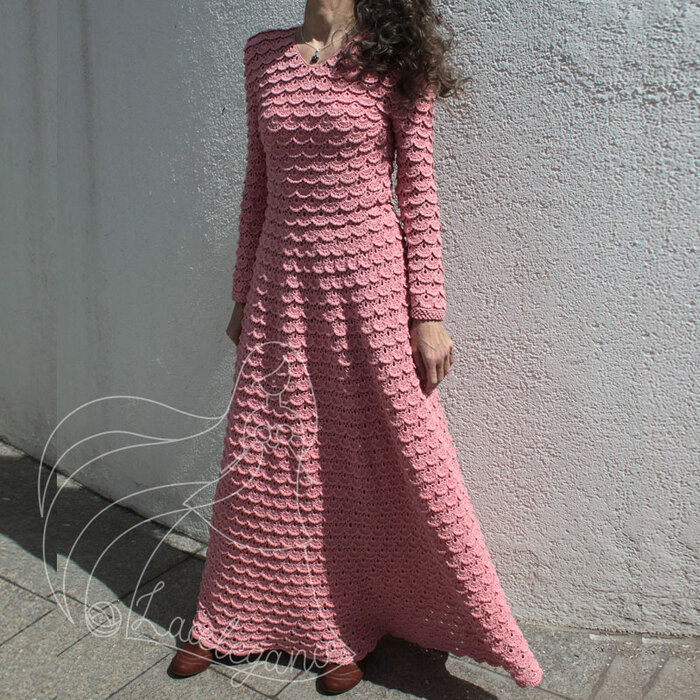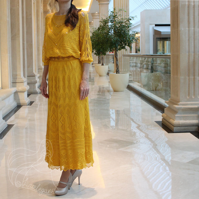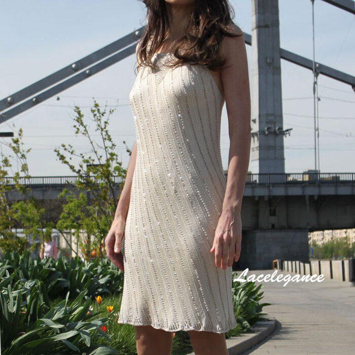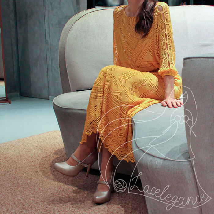 Платье связано из шелка Karin от японского производителя Hasegawa Corporation.