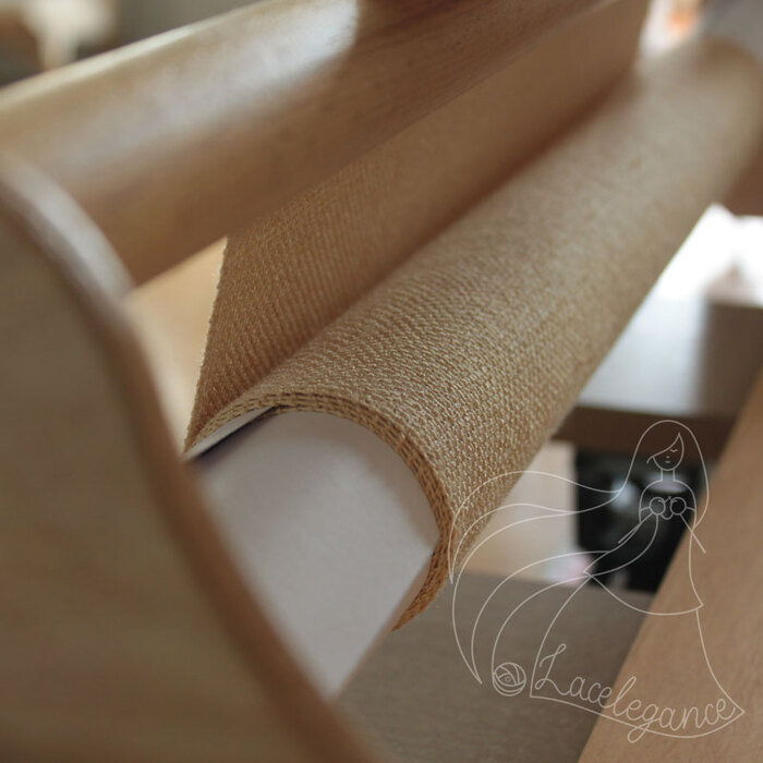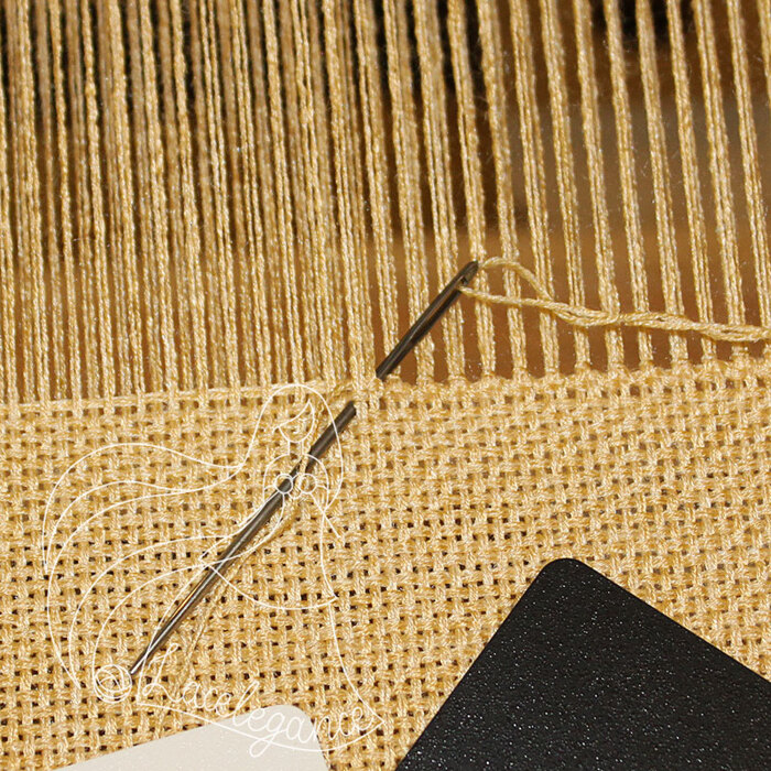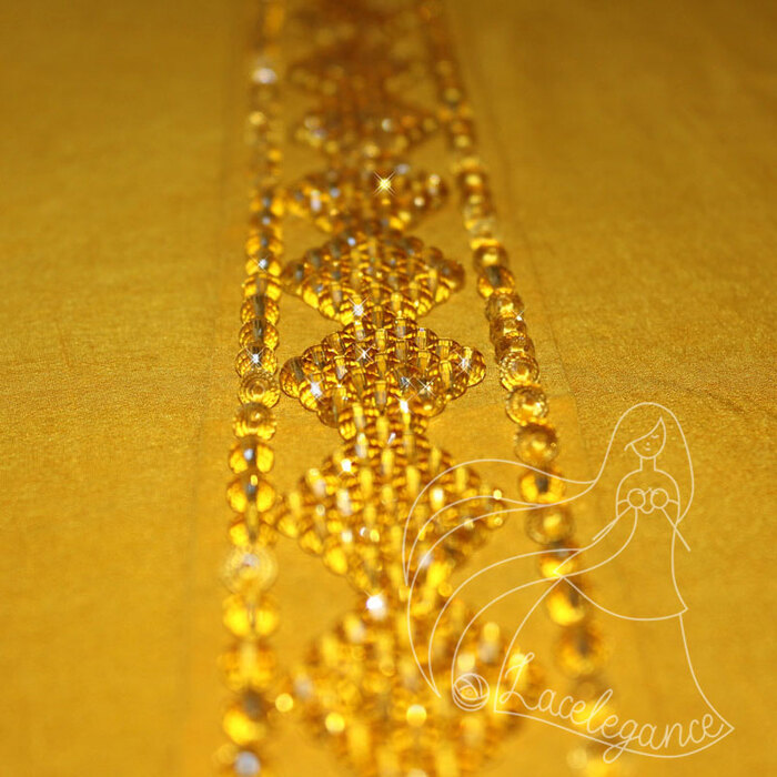 Кристаллы не пришиты, а ввязаны в полотно (каждый надет на свою петлю).