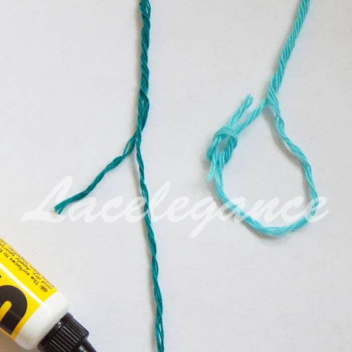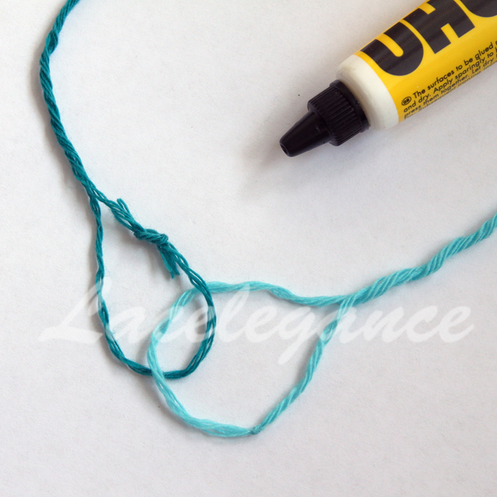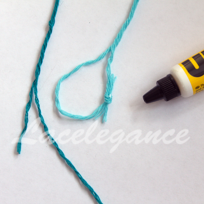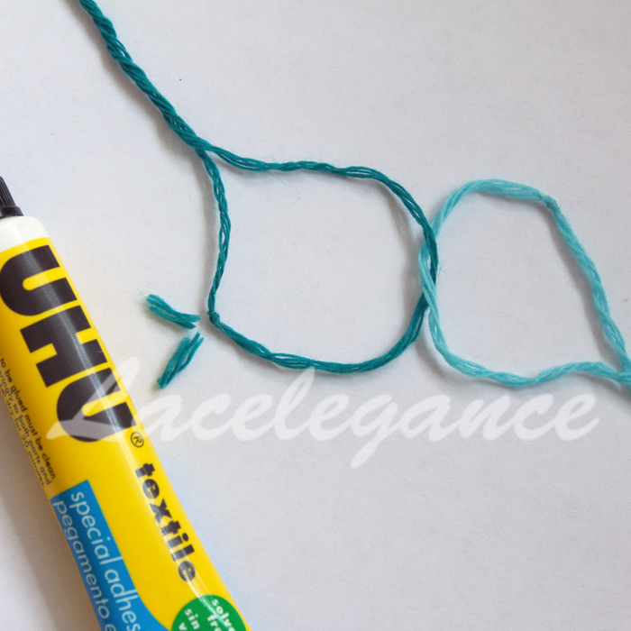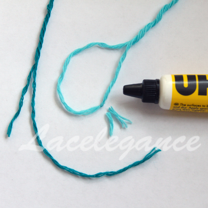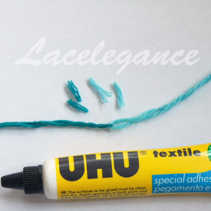 Добавляю каплю текстильного клея (для скользких нитей, к шерстяным можно не добавлять).