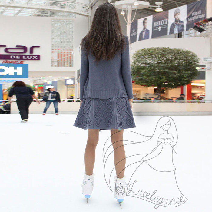 На лицевой стороне юбки - изнаночные петли, как и полагается основе арана.
