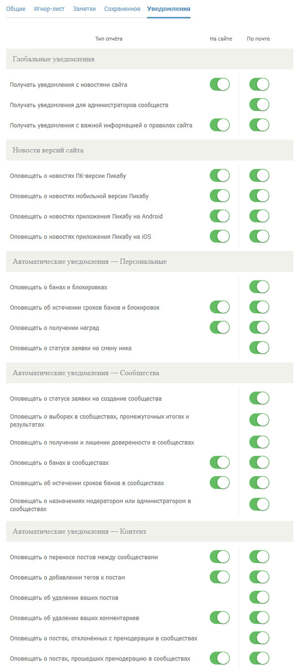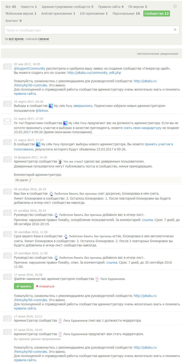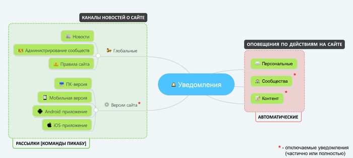 Получаем: нужно продумать, какие уведомления отключать нельзя, а какие можно. Уверен, что пикабушникам нужно видеть причины банов по сайту, причины удалений и отклонений постов, факт получения и лишения доверенности. И несколько других очевидных вещей.