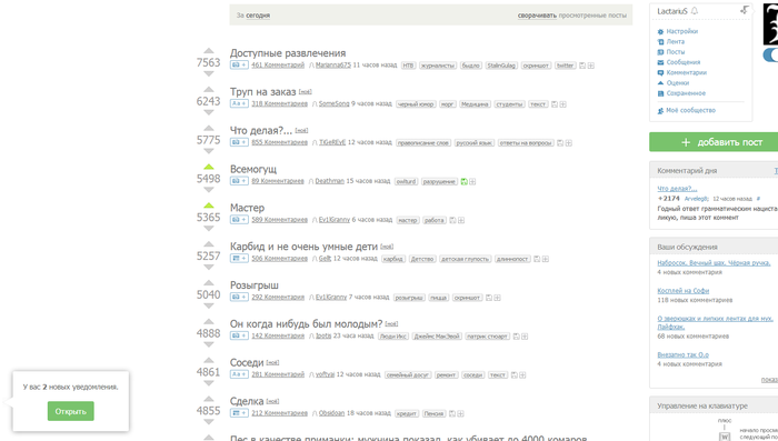 Однако, в любом случае главная страница ЦУ — это категория «Все»: не надо лазать и искать, куда пришло новое оповещение. Остальные категории для удобства (как с постами).