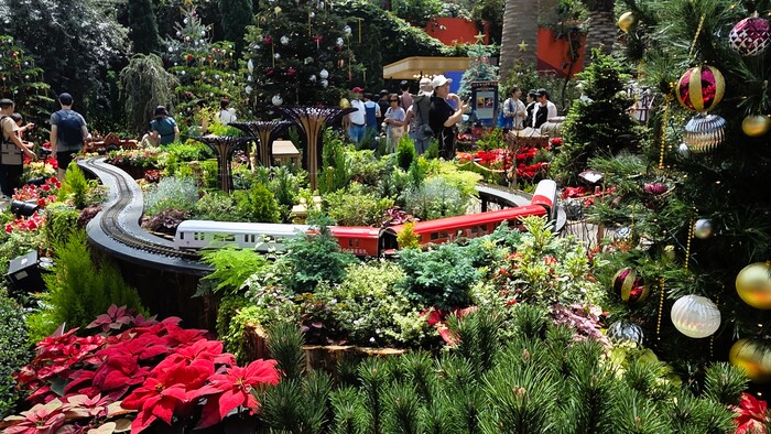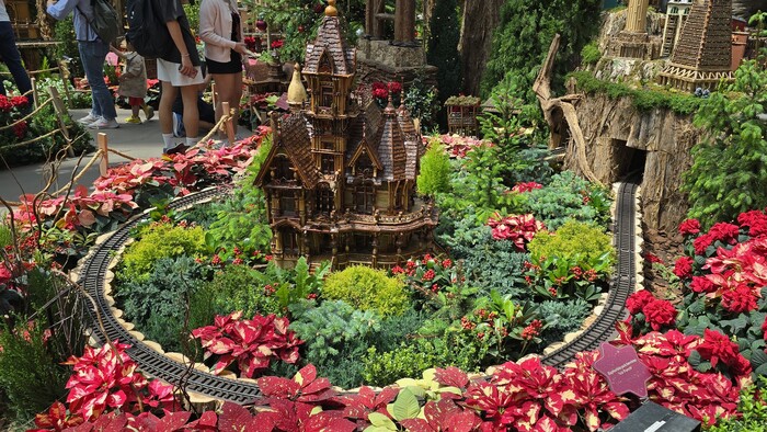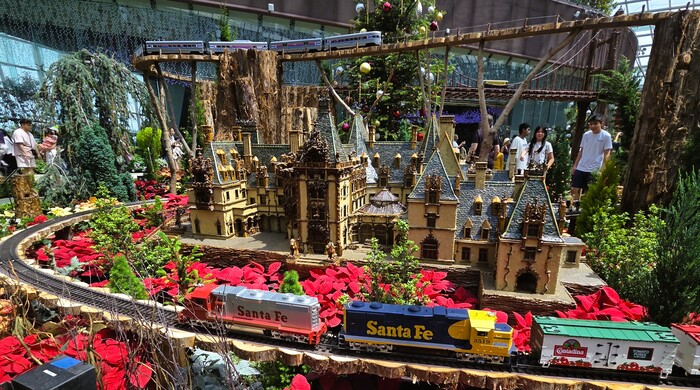 Ну и рождественская железной дорогой и ездящими по ней поездами - занимала четверть оранжереи точно