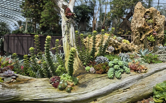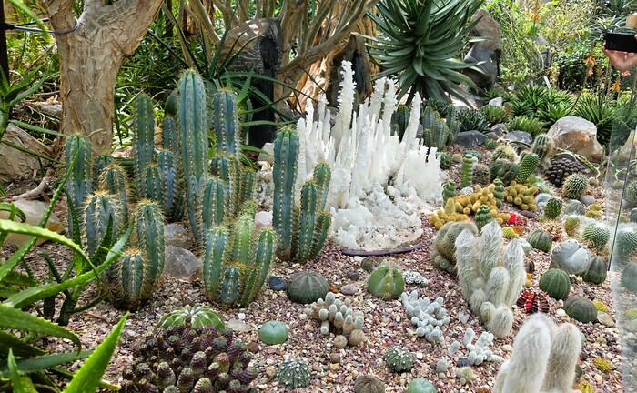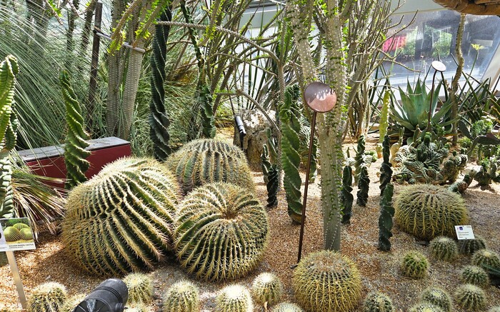 На втором этаже под самым куполом совершенно необыкновенная коллекция кактусов и суккулентов, дополнительный восторг за оформление клумб