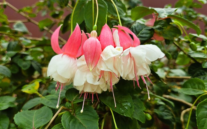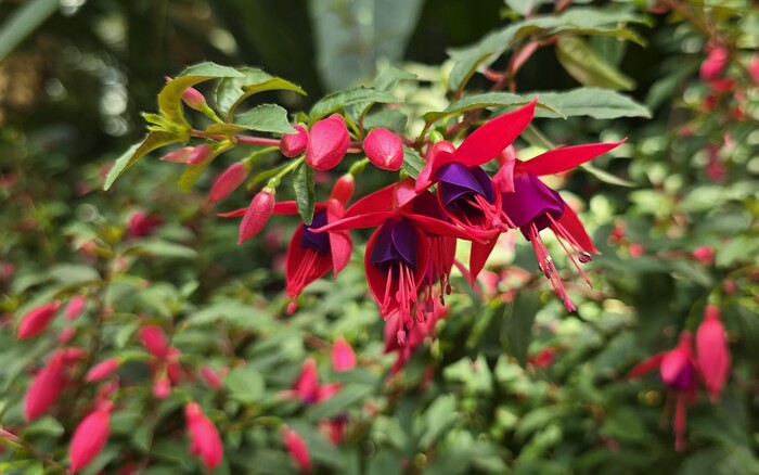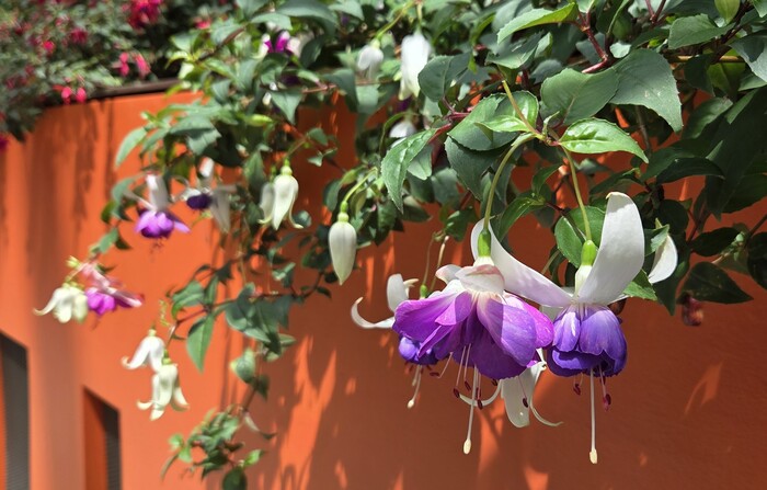 Фуксии везде огромными кустами, очень разнообразные и красивые