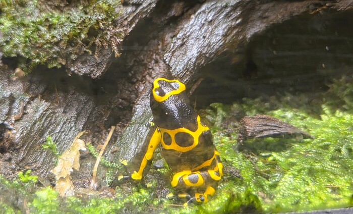 Дальше есть зал со змеями и прочими рептилиями, но там как-то все прятались и хорошо удалось поймать в кадр только ядовитую лягушечку