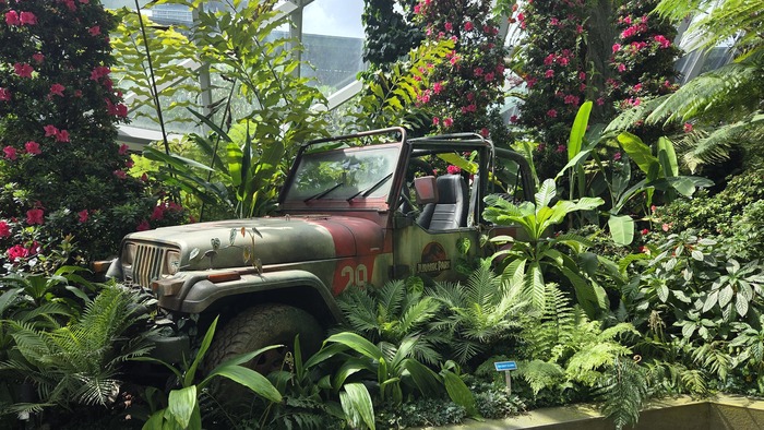 Эта оранжерея оформлена в стиле Парк Юрского периода и посвящена тропикам