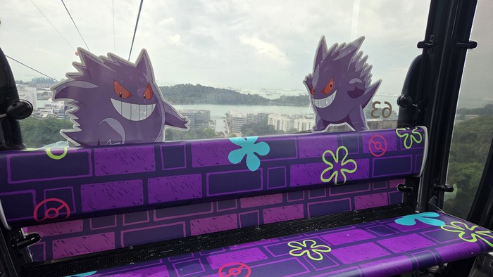 Итак, мы отправились на остров по канатной дороге. Обычные кабинки украшены покемонами, а VIP имеют панорамные окна и прозрачный пол - но туда билеты стоят дороже, поэтому мы взяли обычную. Народу было немного, мы в кабинке ехали вдвоем.