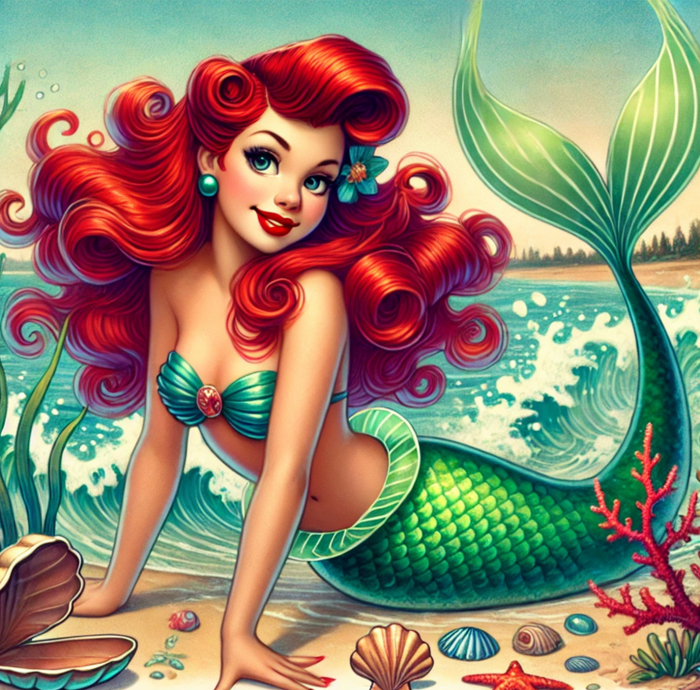 Энергичная и независимая, Ариэль превращается в гламурную икону пин-ап стиля. Её образы подчёркивают жажду свободы и стремление к неизведанному, дополняясь аксессуарами в ретро-стиле и кокетливыми деталями.