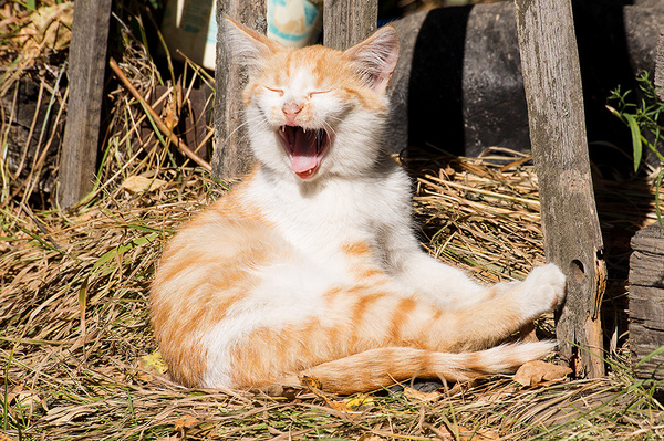 У нас на даче живет кошка с котятами, которых уродилось аж 6 штук. Кошка бесхозная, как выяснилось, живет там уже третий год, умудрившись пережить две зимы. В том году родила семерых, но благо хотя бы котят забрал дед, живший по соседству.