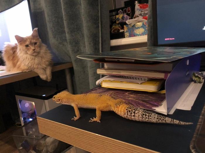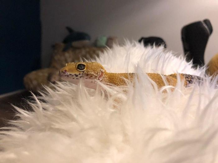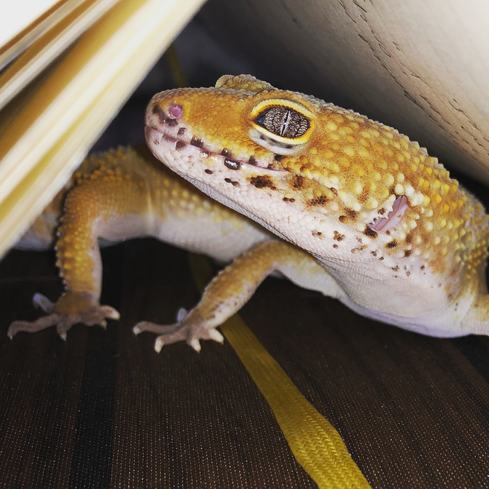 Вообще я всегда хотела чешуйчатого гада, но заводила только пушистых пидоров. Кошачий пул быстро заполнился, а душа просила "чего-нибудь эдакого". Мы рассматривали питонов, игуан и тегу. Но, погуглив последствия с ними стычек, сократили список до змей. Пока, пару месяцев назад, соседка двоюродной тёти знакомого водовоза не поинтересовалась, а нужна ли кому ящерица да с приданным. Я ещё не знала, кого именно предлагают, но на всякий случай согласилась. Честно, эублефары никогда не были в моём топе домашних животных, но здесь я увидела фото и влюбилась.