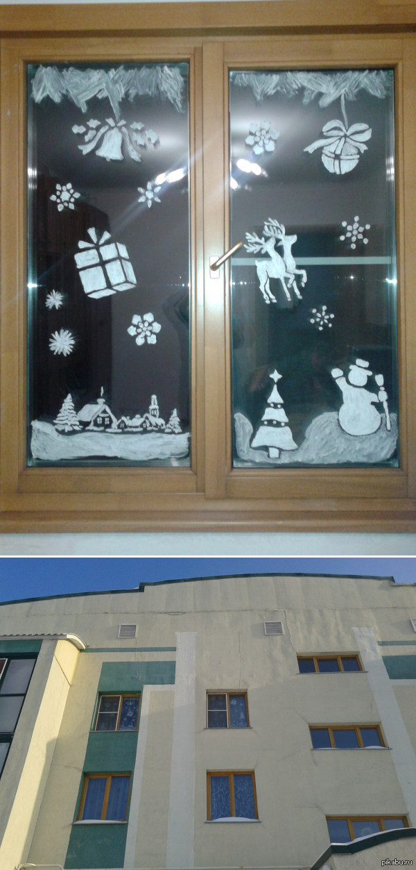 Lam1ro4eQ 10 лет назад Узоры на окне Рисовала девушка, нижнее фото вид с улицы [моё] Зима Узоры на окне