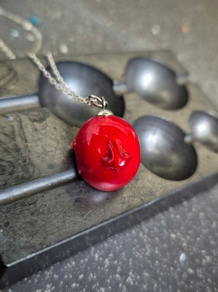 Кулон в технике лэмпворк, итальянское стекло, горелка Прометеус (вы только посмотрите на этот космический бластер!)