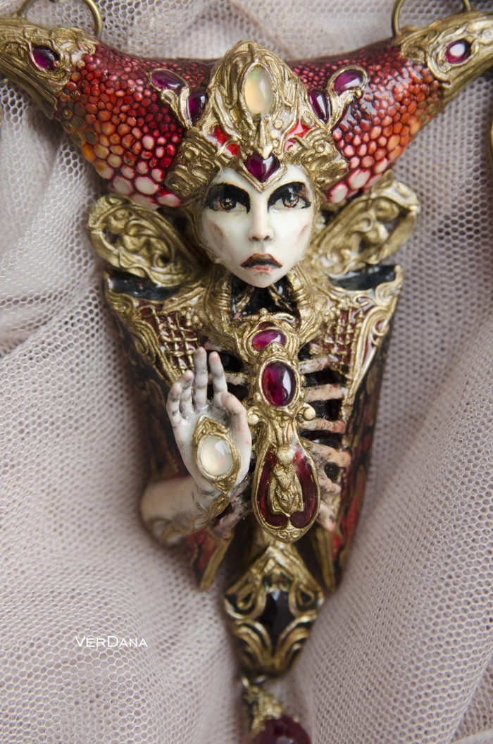 ◽Грудная клетка объёмная, полая, в каждой❗ "косточке" металлическая основа с закрепленными на ней гранатами. В каждом пальчике тоже))◽◽◽◽◽◽◽ ◽Использовались натуральные камни: опалы, гранаты, красная шпинель.