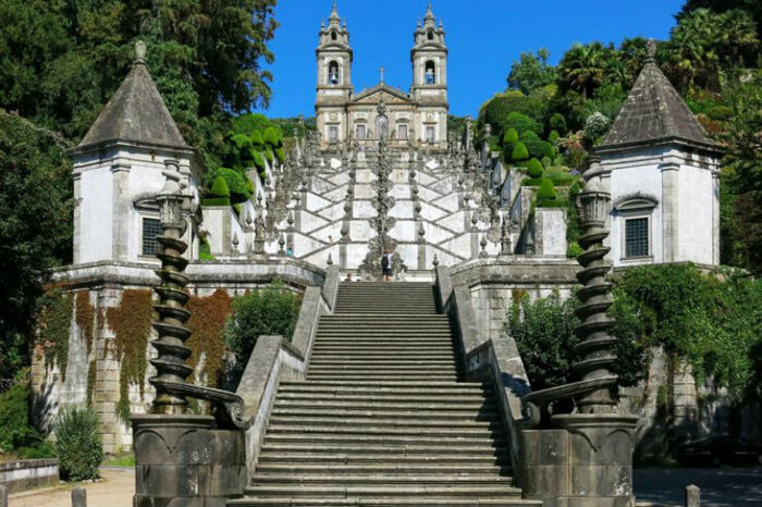 Лестница в святилище Bom Jesus в городе Брага, Португалия