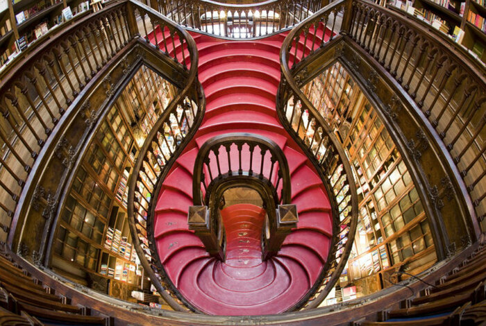 Лестница в книжном магазине Лелло (Livraria Lello) в Порту, Португалия