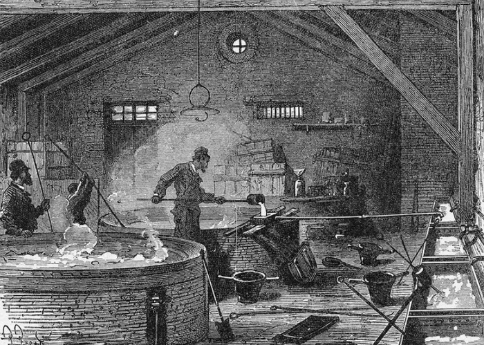 Производство пластилина представляло собой несложный, но по-своему трудоемкий процесс. В подогреваемый котел загружали расплавленную смесь парафина с нефтяным маслом, парафин и канифоль и все это перемешивали. Затем потихоньку подсыпали глину и пигмент, продолжая перемешивать и подогревать смесь.
